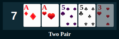 Two pair is a hand that contains two cards of one rank, two cards of another rank and one card of a third rank (the kicker).